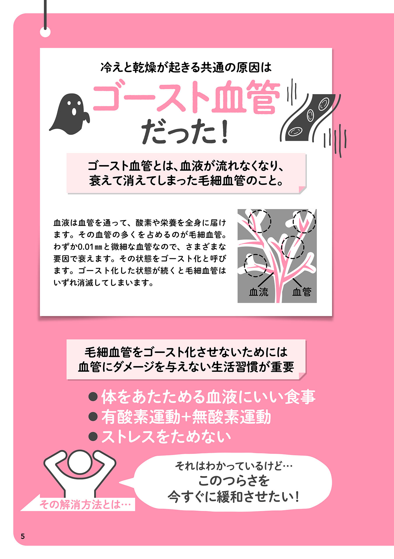 冷えの大きな原因は、末端の毛細血管まで血が通っていない状態の“ゴースト血管”。