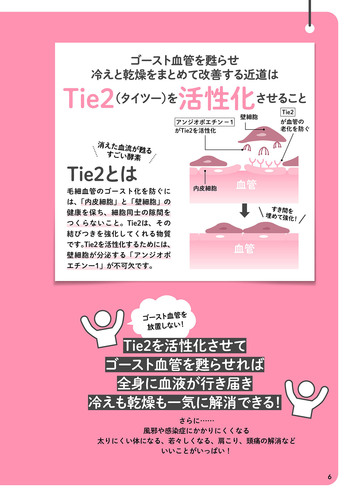 本書では、温活の名医と呼ばれる著者が今までの研究の中でも効果の高い方法を厳選し、『Tie2』を活性化させる方法をプログラム化!