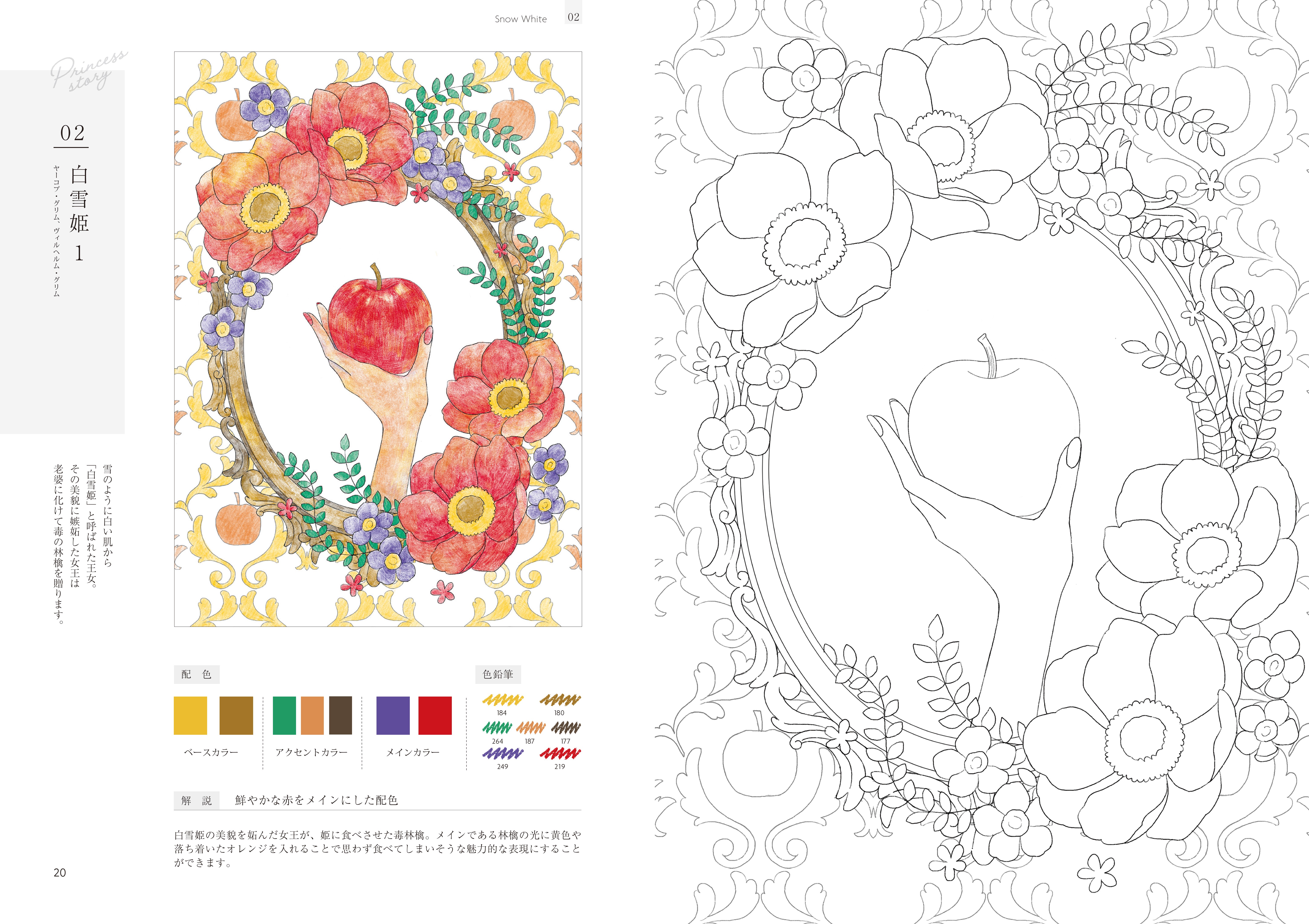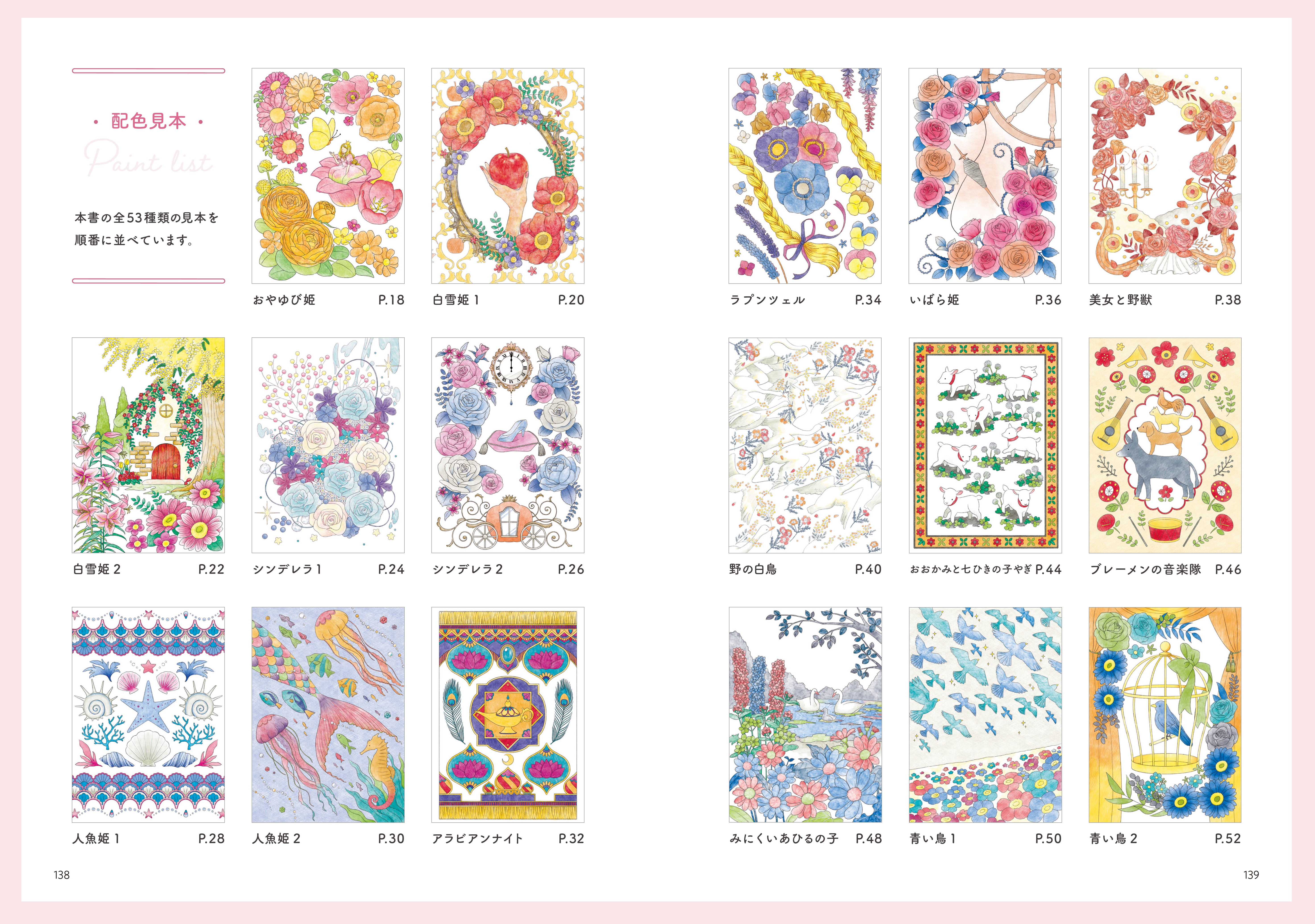 お手本の配色を参考にぬり進めれば、これまで使わなかった色や色合わせと出会えます。