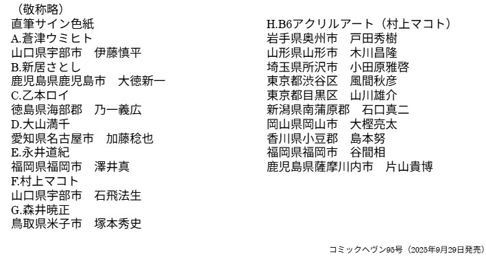 コミックヘヴン95号(2025年9月29日発売)掲載の「ヘヴン誕生13周年 !!! ご愛読感謝プレゼント‼」にご応募いただき誠にありがとうございました。